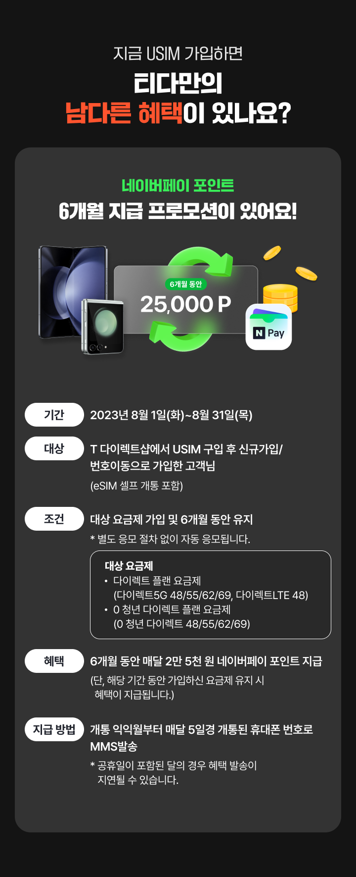 [6개월 동안] 통신비 걱정? 티다가 덜어드려요.