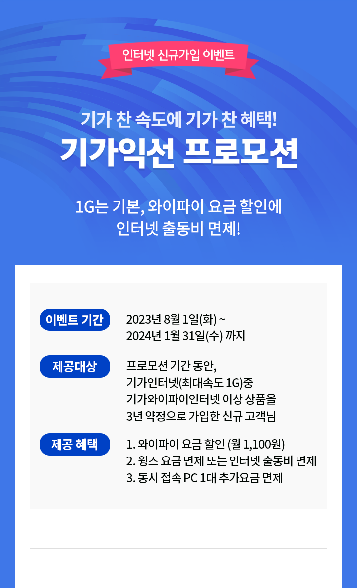1G는 기본, 와이파이 요금 할인에 인터넷 출동비 면제!