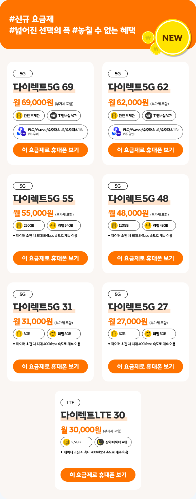 LTE부터 5G까지 더욱 다양해진 T 다이렉트샵의 다이렉트 플랜!