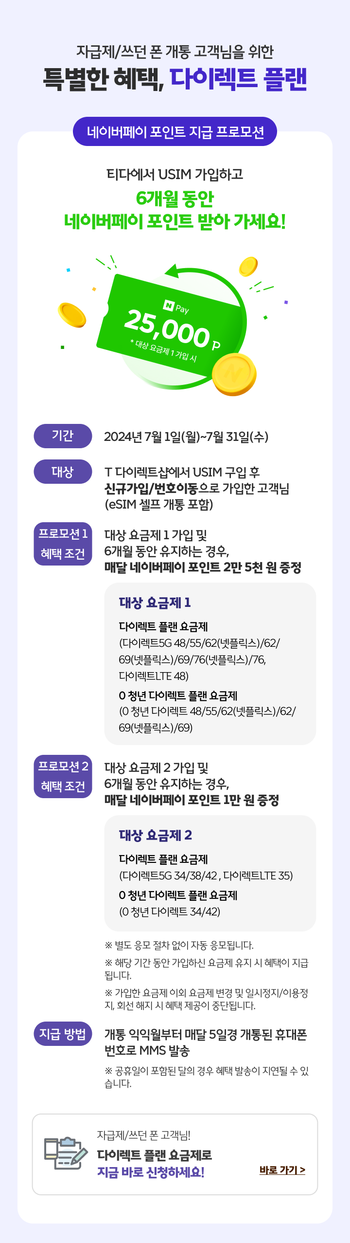 티다에서 USIM 가입하고 6개월 동안 매달 네이버페이 포인트 받아 가세요!