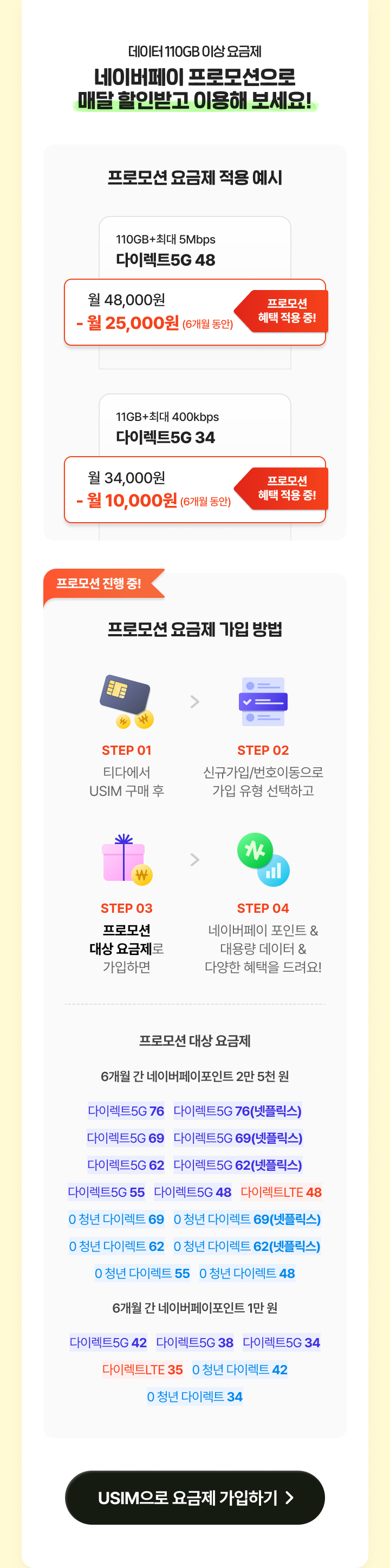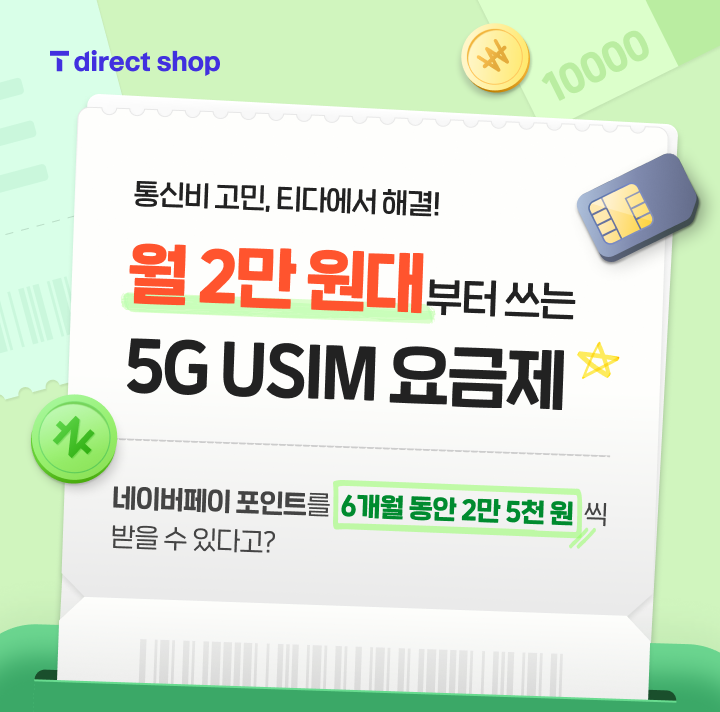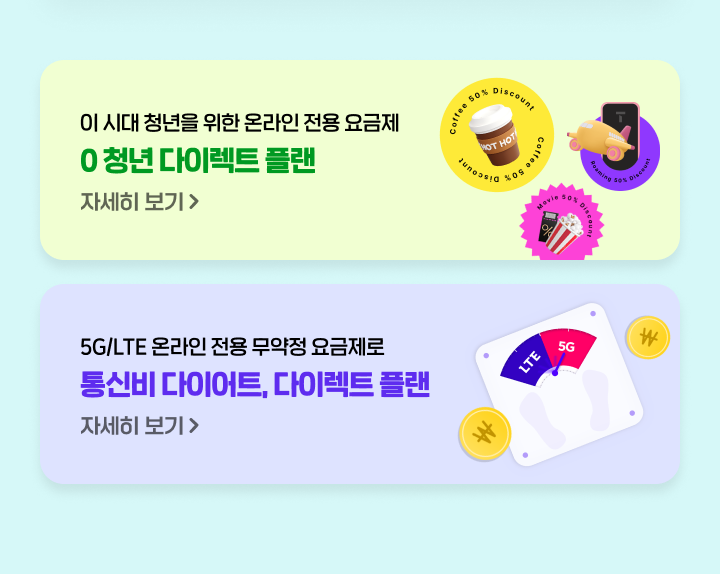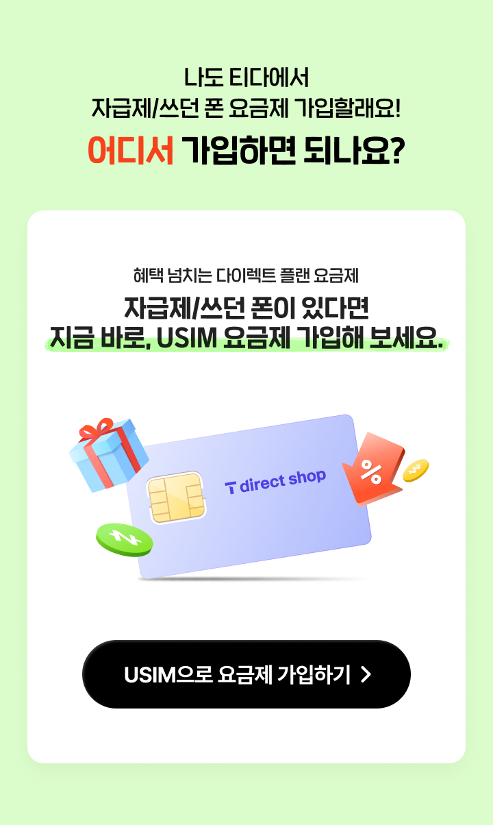 혜택 넘치는 다이렉트 플랜 요금제 자급제/쓰던 폰이 있다면 지금 바로, USIM 요금제 가입해 보세요.
