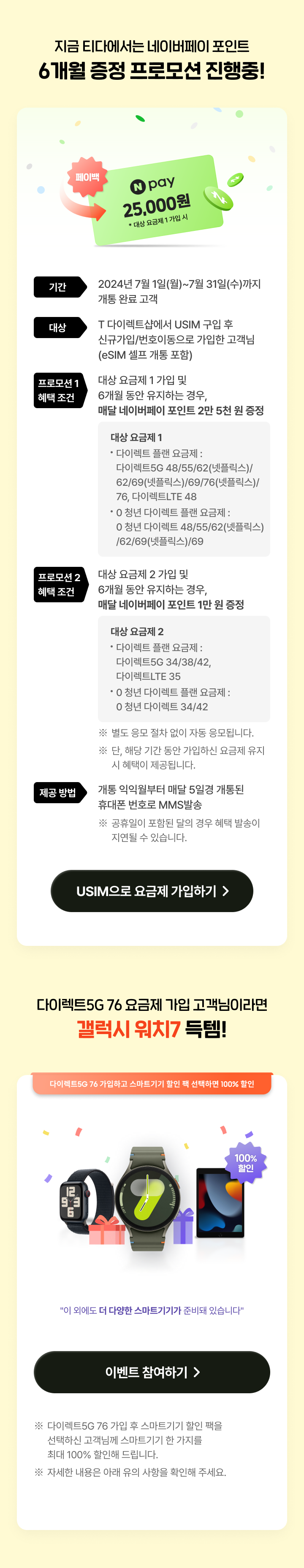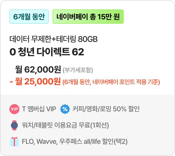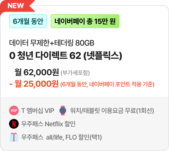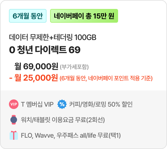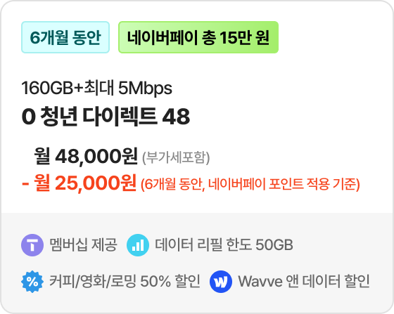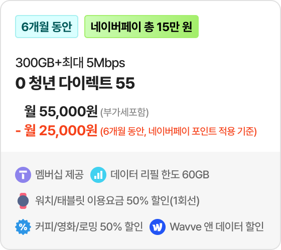 네이버페이 25,000원 페이백 *대상 요금제 1 가입 시