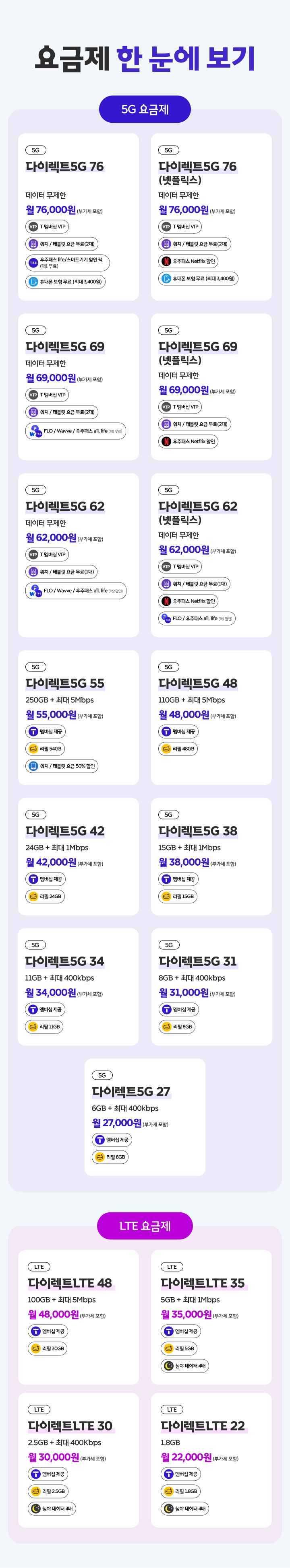 ※ 다이렉트 플랜 요금제 별 혜택이 상이하므로, 자세한 내용은 아래에서 확인해주세요.