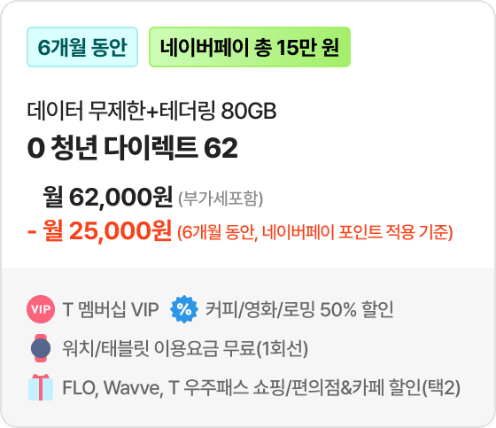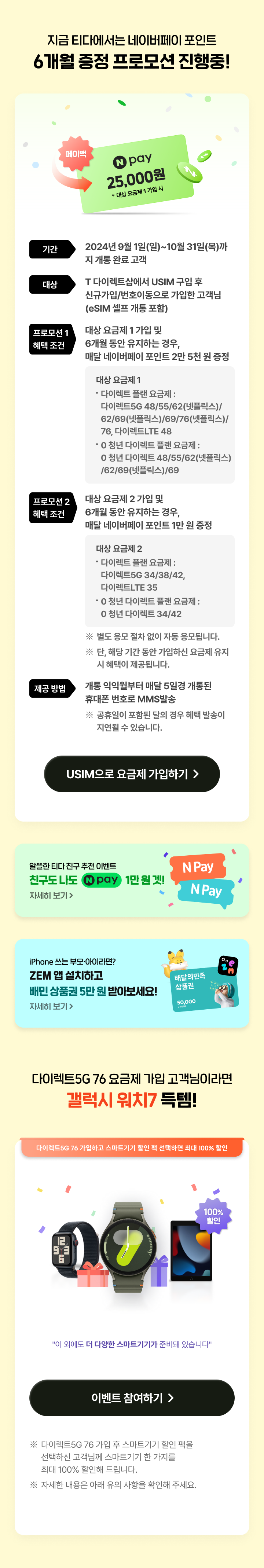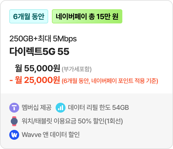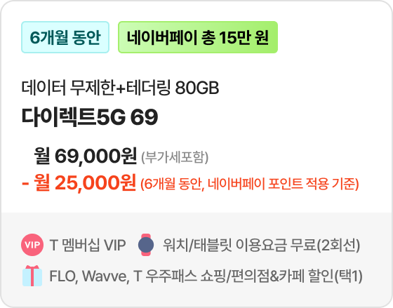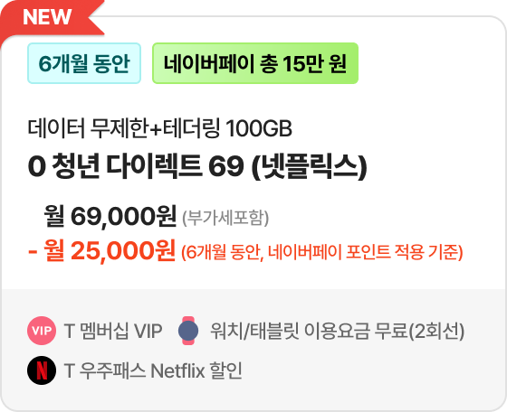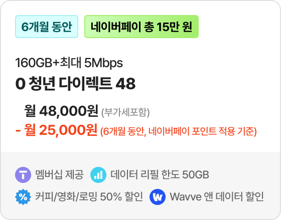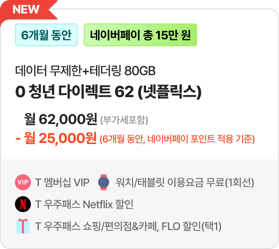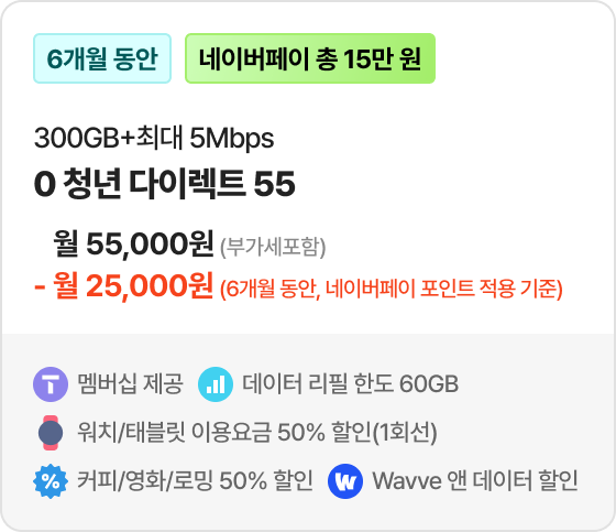 네이버페이 25,000원 페이백 *대상 요금제 1 가입 시