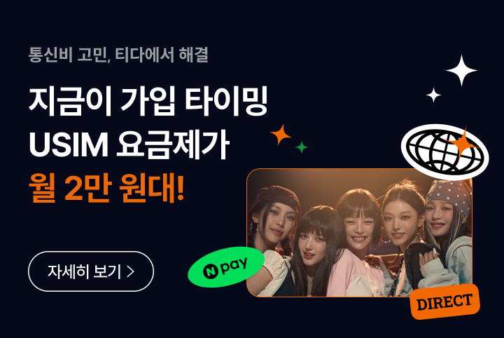 지금 티다 롯데카드로 다이렉트5G 48 이용요금 자동납부 시 최대 20,000원 혜택!