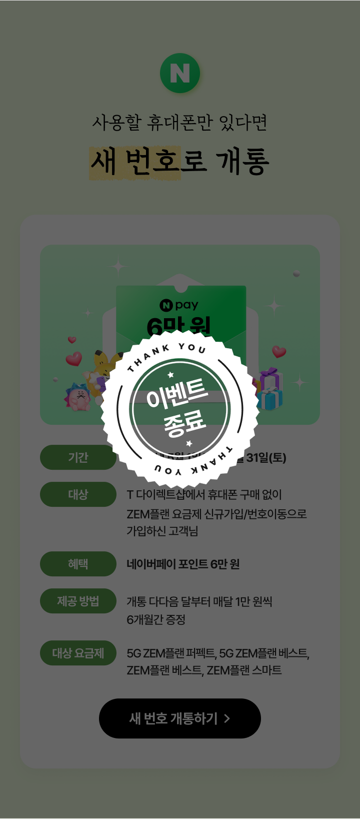 [이벤트 종료]사용할 휴대폰만 있다면 새 번호로 개통