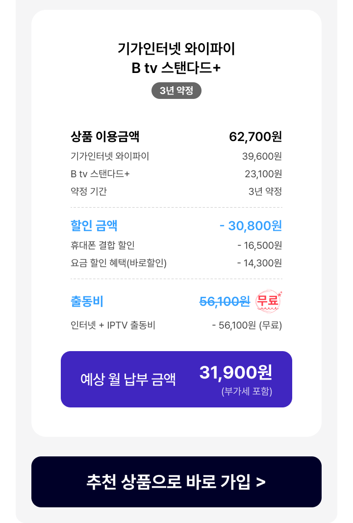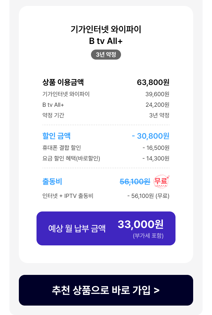 1기가 인터넷 + B tv All+ + AI 4 vision 셋톱박스