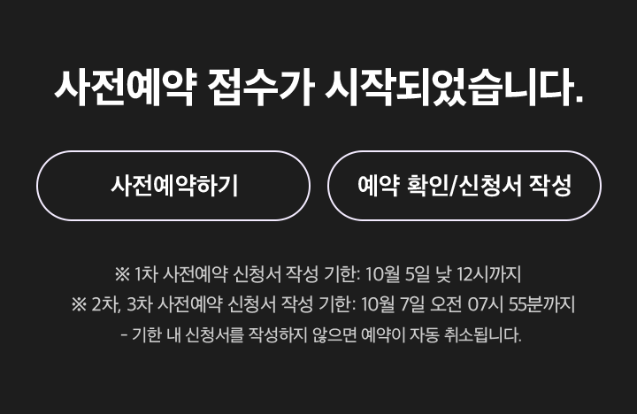 [2차, 3차 사전예약 신청서 작성 마감 기한: 10월 7일(금) 7시 55분까지]