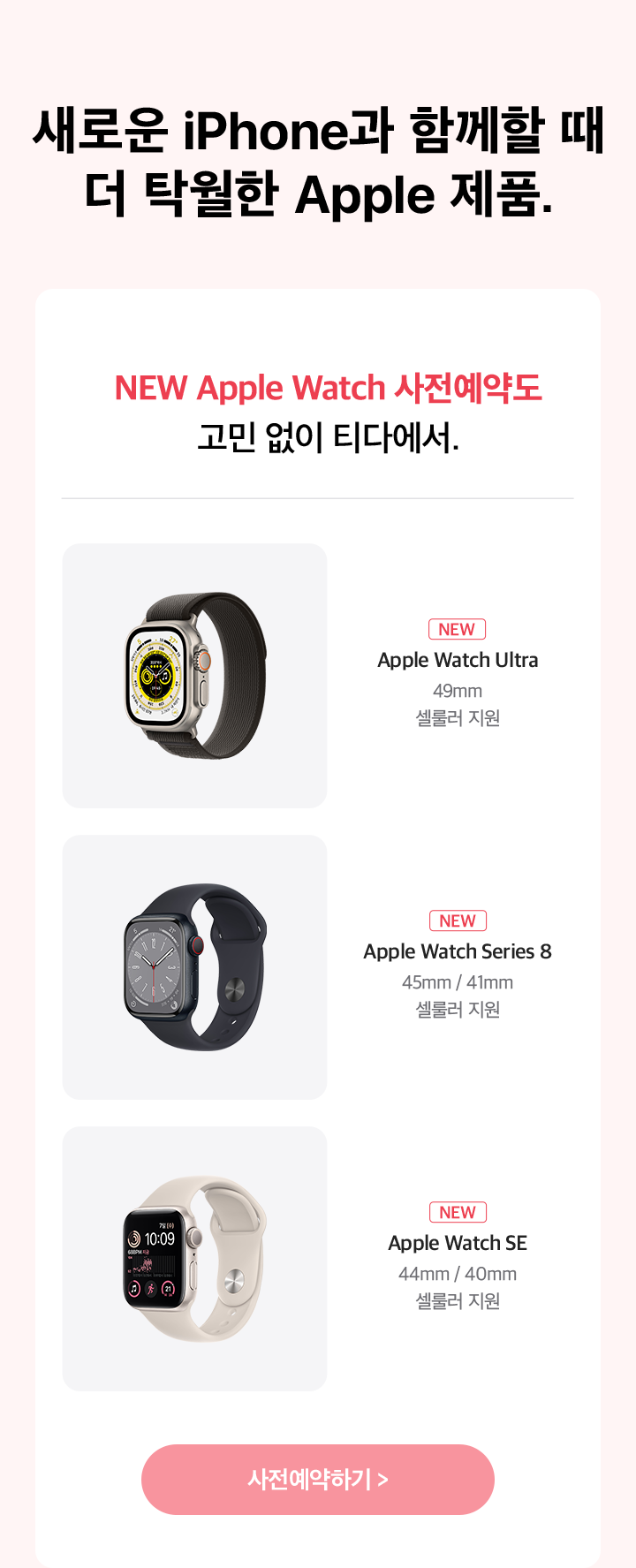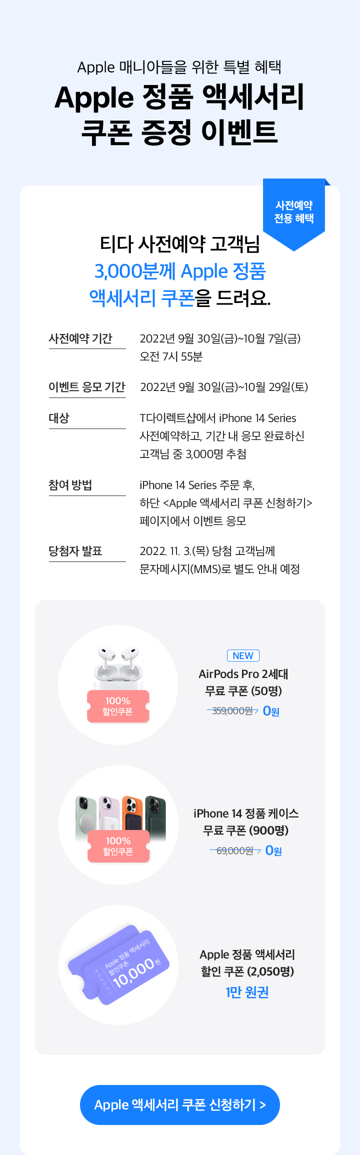 티다 사전예약 고객님 3,000분께 Apple 정품 액세서리 쿠폰을 드려요.