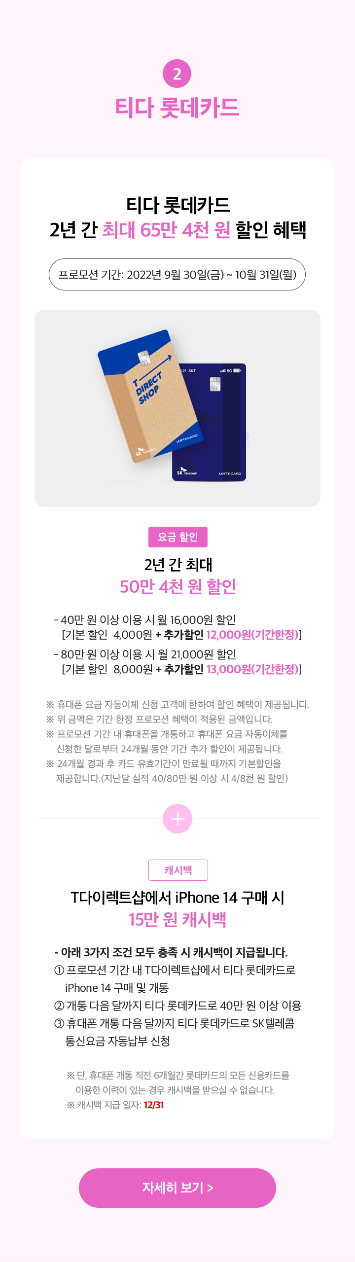 티다 롯데카드 2년 간 최대 65만 4천 원 할인 혜택