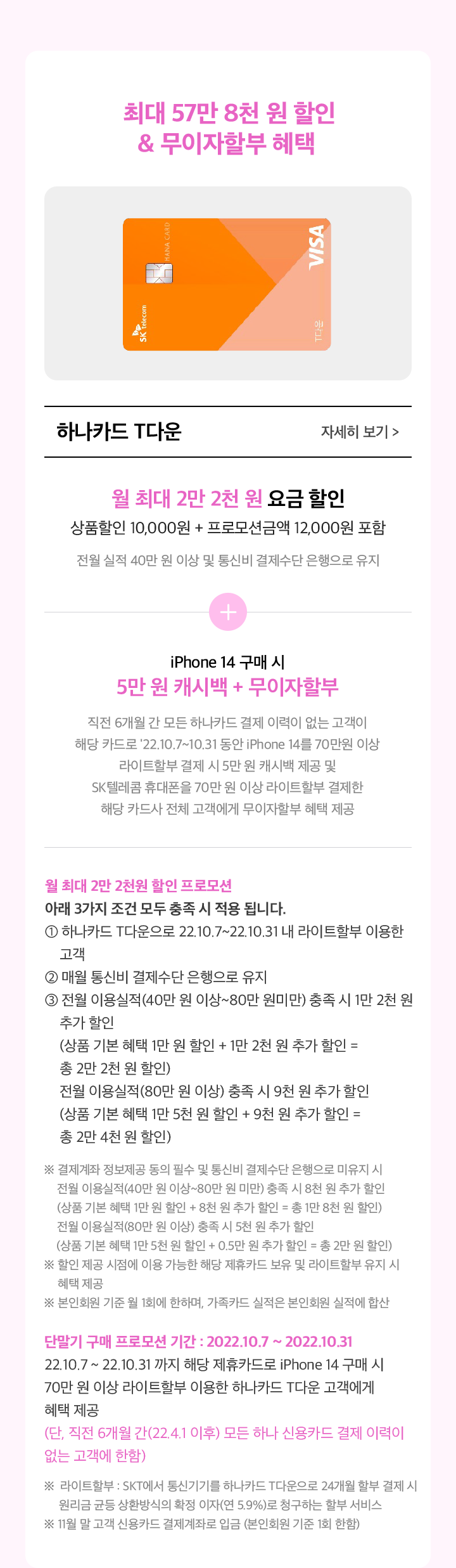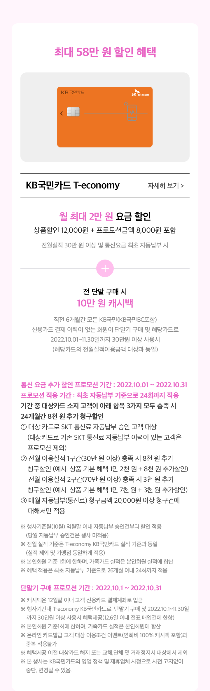 ※ 프로모션의 자세한 유의사항은 기획전 하단 및 T월드 홈페이지/앱을 참고하세요.